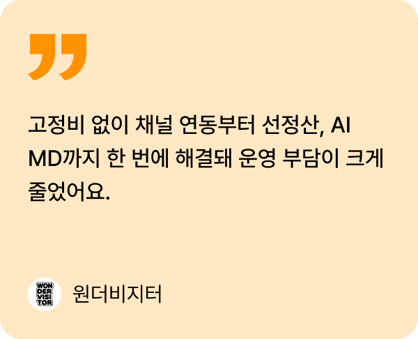 온라인 MD 구독 서비스(구독형) : 월 매출에 따라서 월 99만원부터 시작(VAT 포함)하며 모든 운영 자동화 기능을 사용합니다.