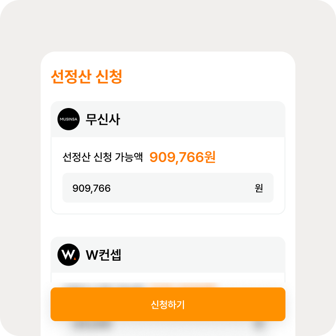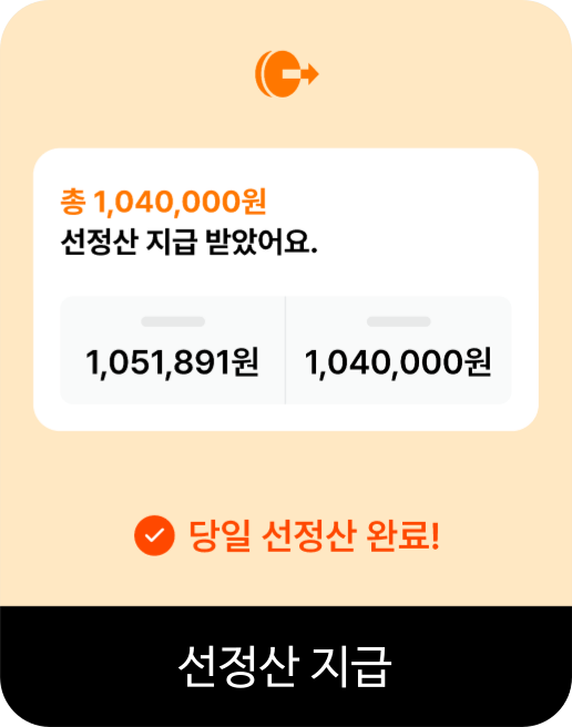 보통 60일 이상 걸리는 정산 주기를 '오늘'로 앞당겨 드립니다.